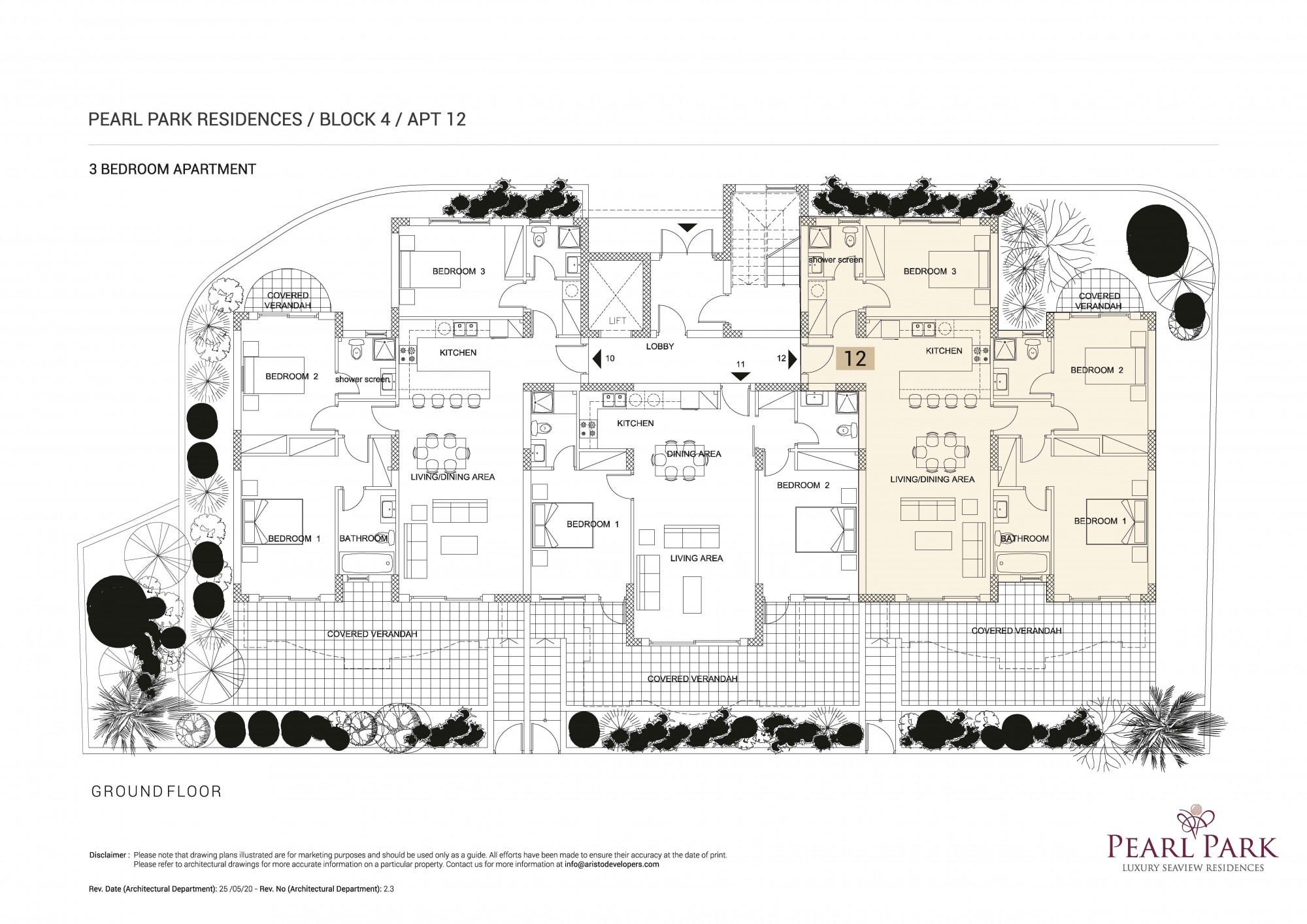 Pearl Park Residences No. 12 in Block 4 is a luxury 3 bedroom apartment for sale in Paphos, Cyprus. The residents will enjoy superb facilities such as a children’s paddling pool, a communal swimming pool, a private gym and landscaped gardens. The apartment is adjacent to a luscious green park with children’s playground facilities and is also close to all major city amenities, such as the Paphos Tourist area and Harbour and to the Kings Avenue Mall.