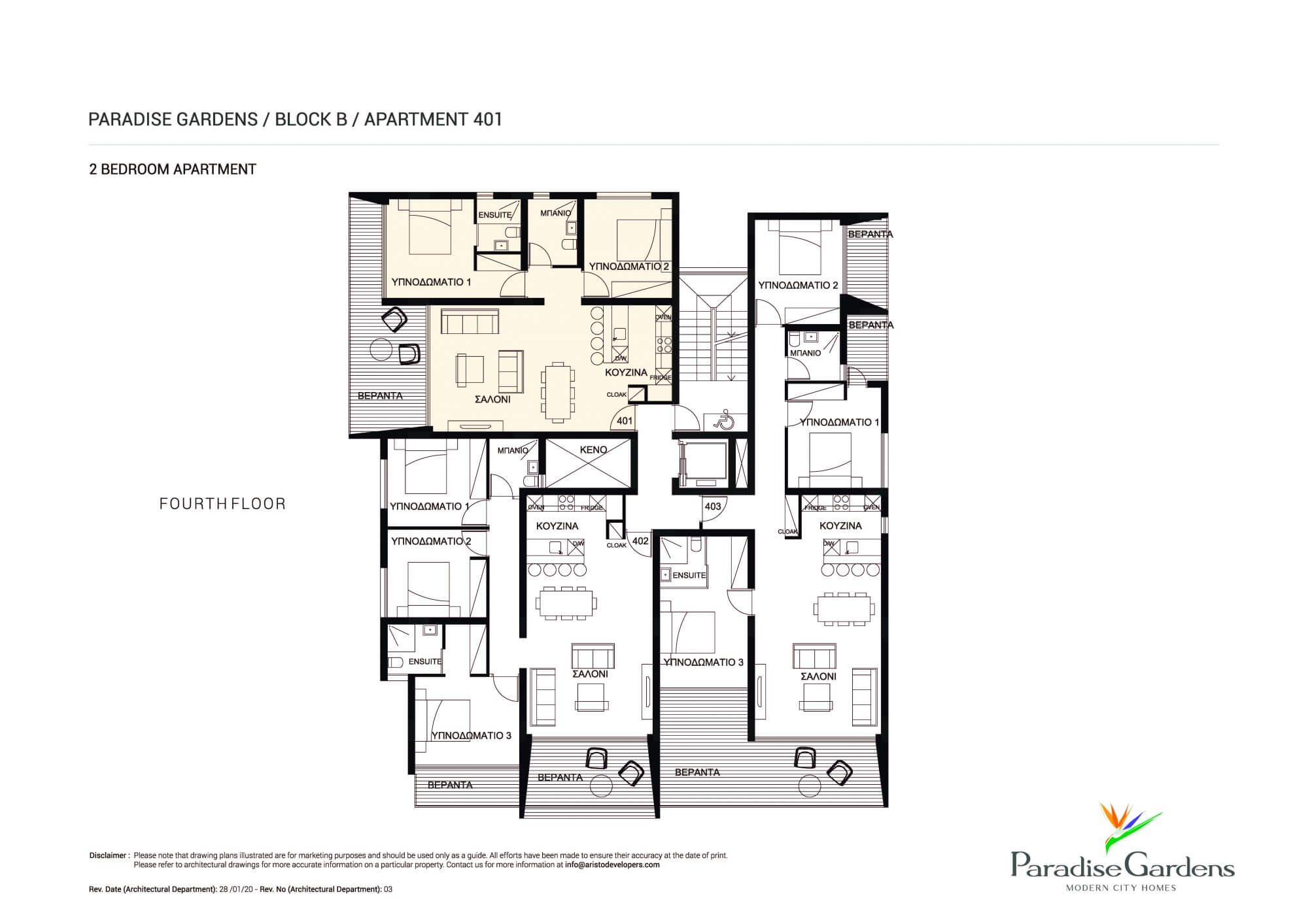 Апартаменты № 401 (блок B) Paradise Gardens – это 2-спальные апартаменты в Пафосе. Апартаменты расположены в центре города Пафос недалеко от основных объектов города, включая гавань и туристическую зону Пафоса, а также ТЦ Kings Avenue Mall. В апартаментах есть комфортные жилые зоны и балконы с захватывающими видами на окружающий ландшафт. Владельцы апартаментов всегда могут воспользоваться просторным общим бассейном комплекса.